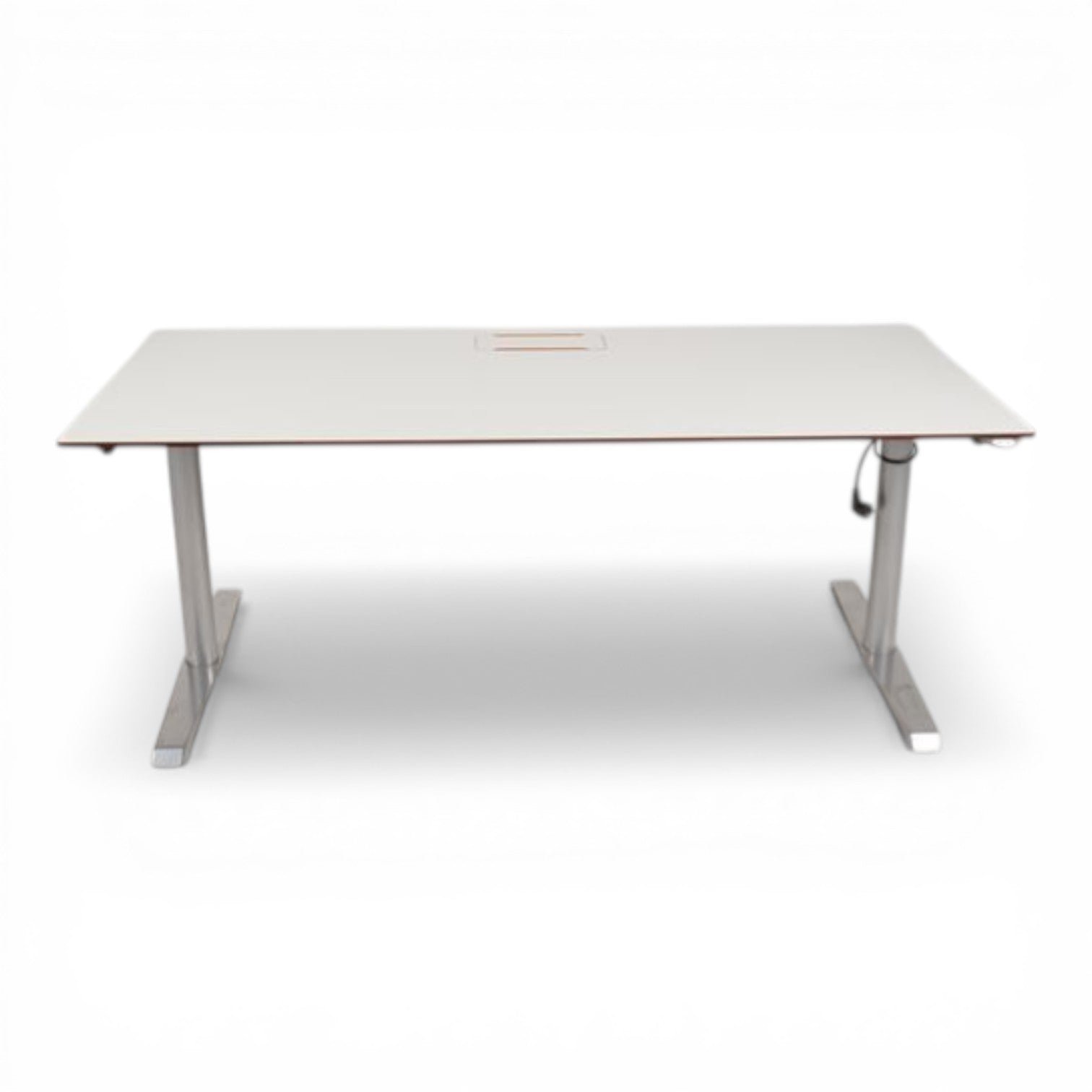 Elektrisk hev/senk skrivebord m/ understell i grå, hvit bordplate 180x80