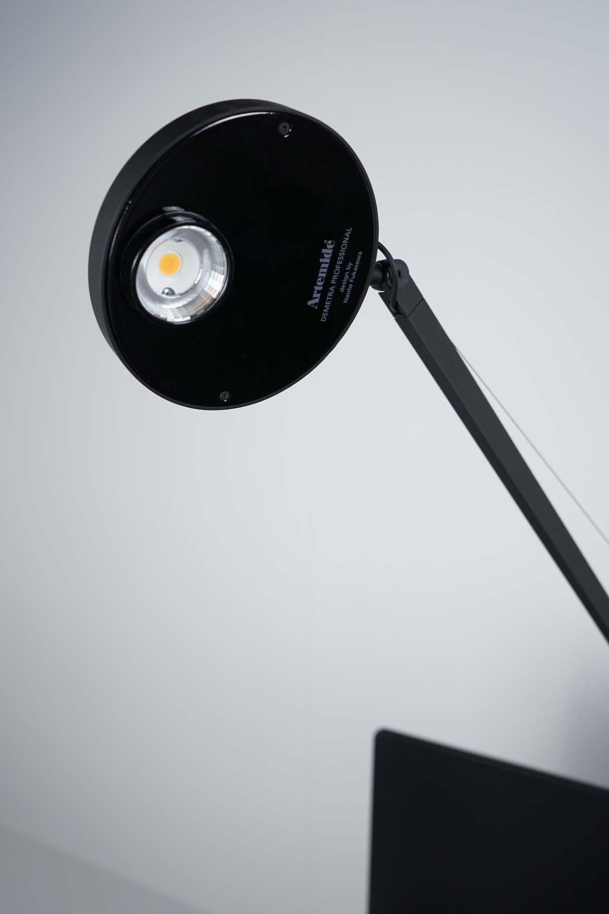 Elegante og praktiske bordlamper fra Artemide i modellen Demetra som festes rett i bordplaten. Disse har stått på Motanaskrivebord som selges i egen annonse. Lampene gir skrivebordet en ekslusiv look, samtidig som den tar minimalt med plass på bordplaten. Ledningene felles ned langs hullet til festet. Disse kan også monteres på fot om man ønsker det, som kan kjøpes fra forhandler.