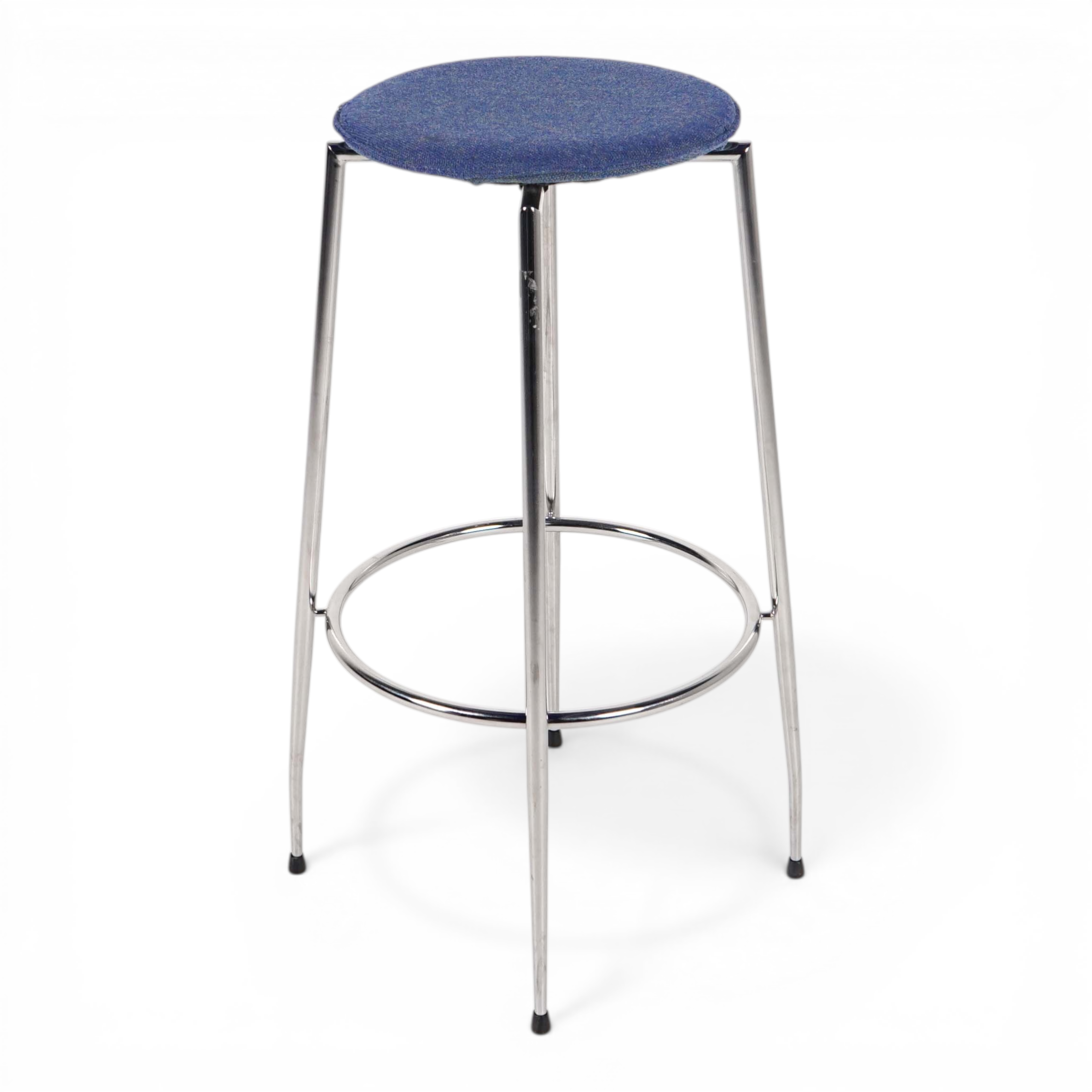 Slank barkrakk fra Fora Form i tidløst design. Puten er lett polstret og trukket i et delikat, mørkeblått stoff. De er pent brukt og renses før salg.