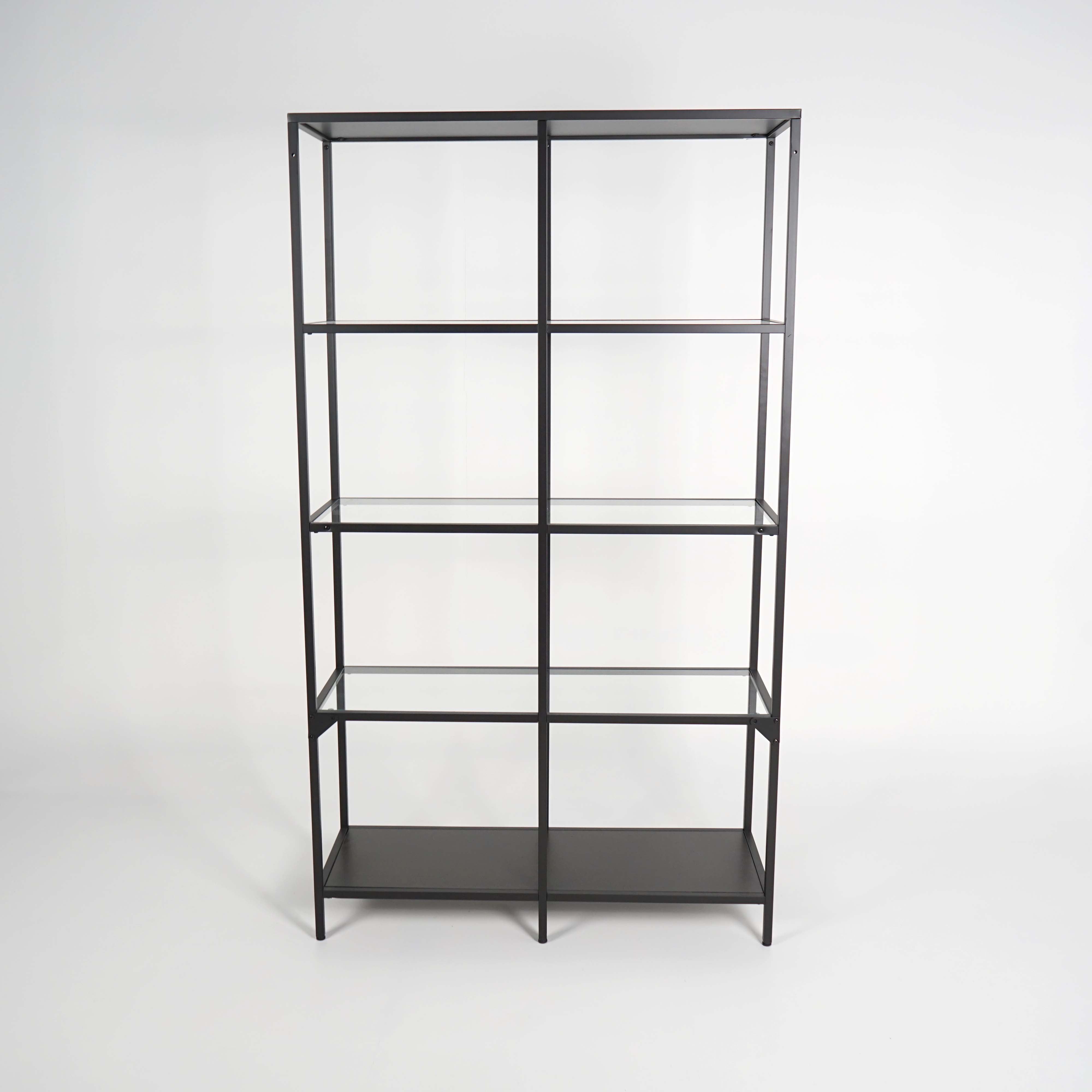 Hylle fra IKEA i modellen Vittsjö. Rammeverk i metall, midthyller i glass samt topp- og bunnplate i brunfarget treverk. Hyllen er pent brukt og i veldig god stad.
