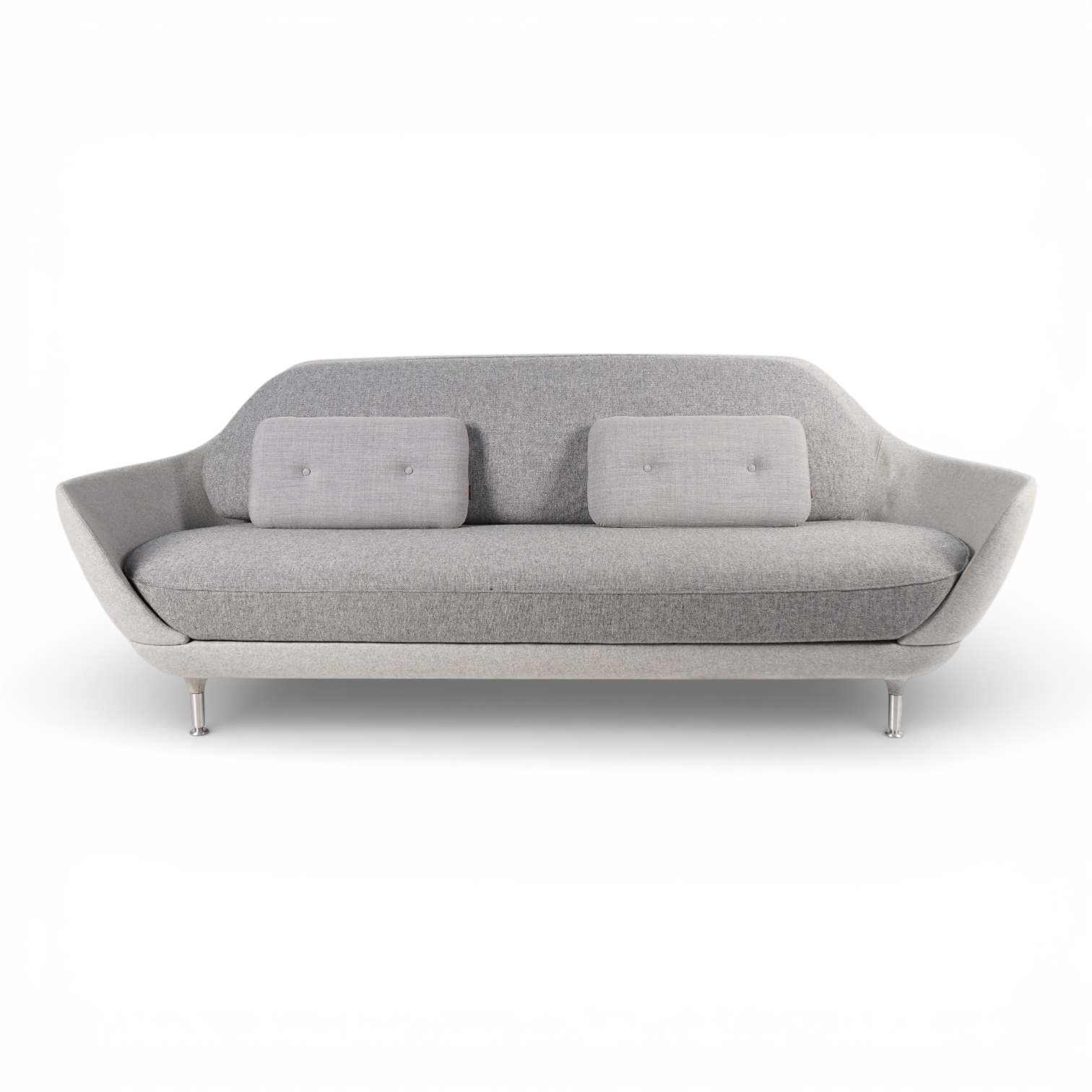 Strøken sofa fra Fritz Hansen designet av Jaime Hayon i 2011. Modellen heter Favn og er trukket i Hallingdal-ull i forskjellige grånyanser. Nypris på sofaen er ca 135 000,-.